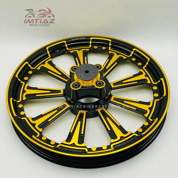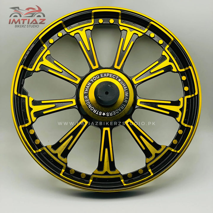Enhance your CG125 motorcycle with our premium T-Style Golden Metal Alloy Rims. These lightweight yet durable rims provide improved handling and a striking golden finish that will make your bike stand out. Designed specifically for CG125 models, they offer perfect fitment and reliable performance for everyday riding or custom builds.