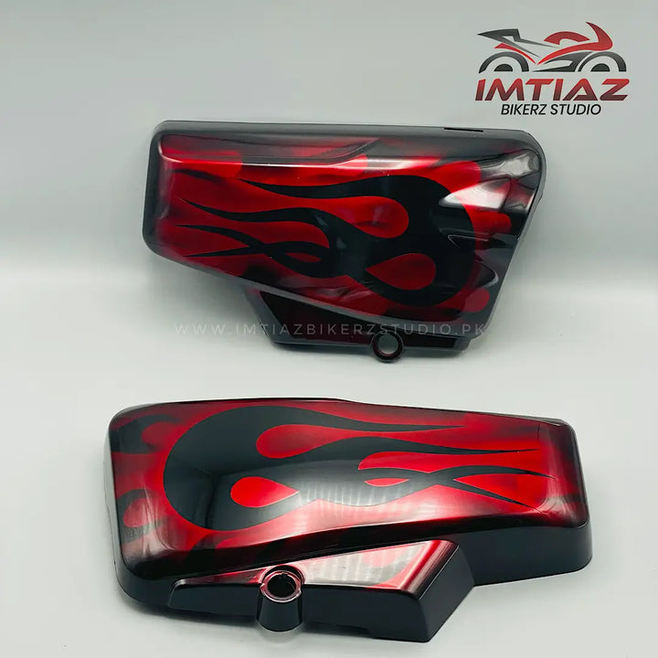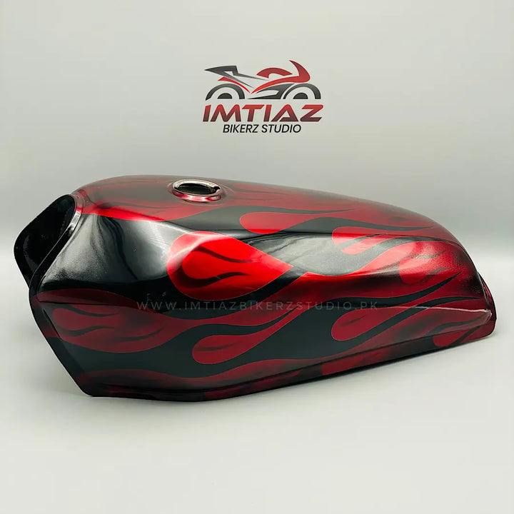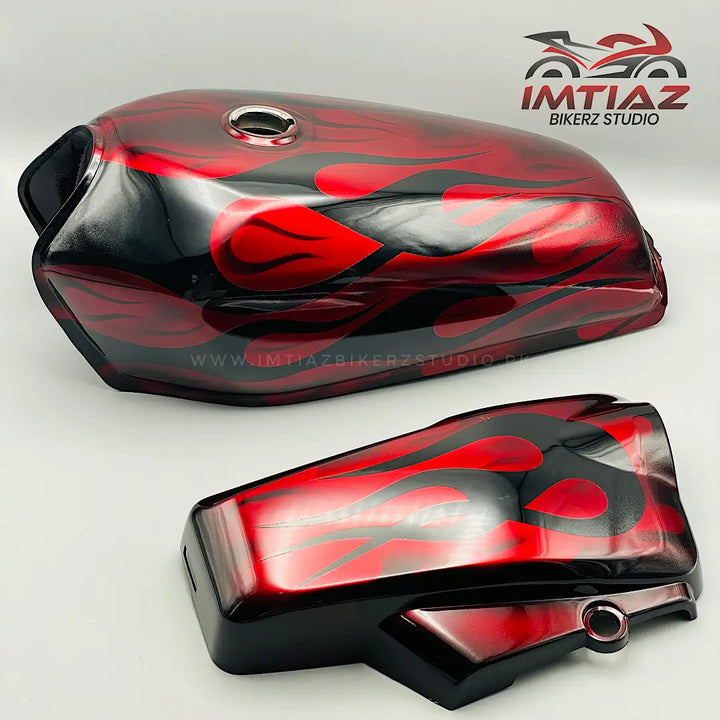 Introducing our high quality Flame Red Design CG125. This product features a 3D paint in a stunning red flame design that is sure to catch the eye. Made specifically for CG125, it is a must-have for any rider looking for a unique and stylish touch on their motorcycle.