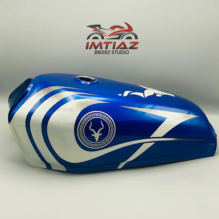 This Markhor Blue/White CG125 features a unique design specifically made for the popular CG125 bike. Its striking blue and white color adds a touch of style to your ride. Upgrade your bike and stand out on the road with this eye-catching design.