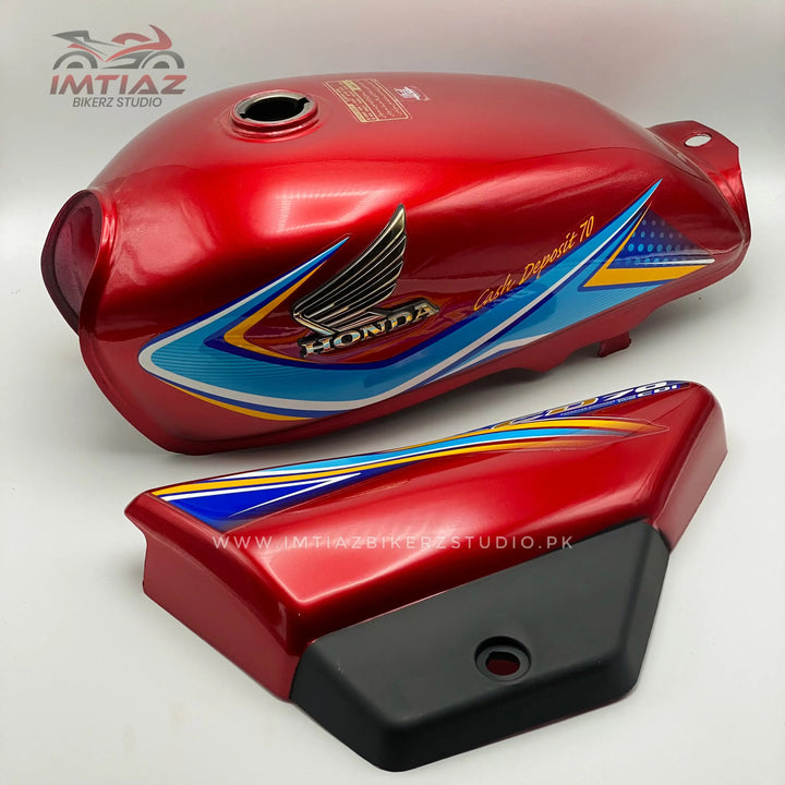 Enhance your CD70 motorcycle with our 2019 Red Fuel Tank featuring premium ABS side covers. This genuine customized set delivers both striking aesthetics and durability for your ride. The vibrant red finish adds a bold touch to your bike while maintaining factory-quality fit and performance. Perfect for refreshing your motorcycle's appearance or replacing worn components.