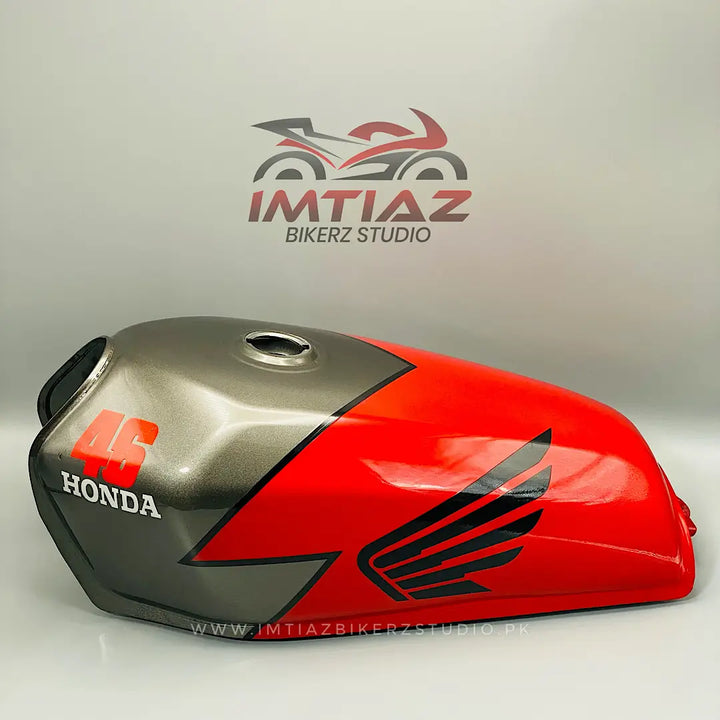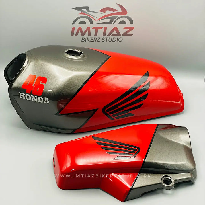 Experience the premium quality and stunning design of the Honda 46 design red/silver CG125 Aplus. Featuring a flawless paint finish, this high-performing product is specifically designed for cg125 bikes. Upgrade your ride and make a statement on the road with this top-of-the-line choice.