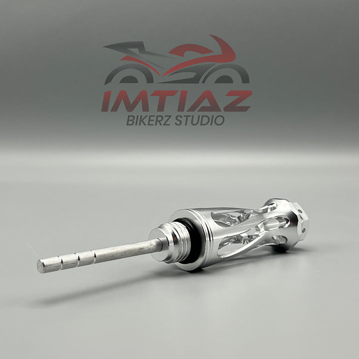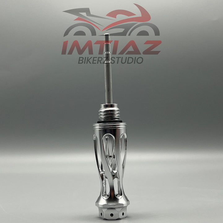 This silver fancy oil gauge is designed for 70 and 125 engines. With its sleek design and precise measurements, you can easily monitor your oil levels with confidence. Upgrade your engine with this expertly crafted gauge for optimum performance.